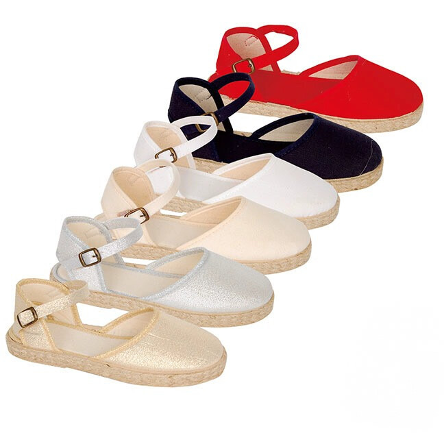 Estas bonitas alpargatas de niña está fabricadas en lino a elegir en 4 colores: blancas, rosas, rojas, negro , beige lino natural o plateadas. La combinación de esos colores con su correa y cierret tipo de hebilla , quedan la mar de bonita puestas. ¡Estarán preciosas con sus vestiditos!. Cerrada en puntera y semidescubierta en talonera.  ¿A qué son preciosas? Su suela como no, en esparto para darle el toque perfecto al look que buscas para tu princesa.