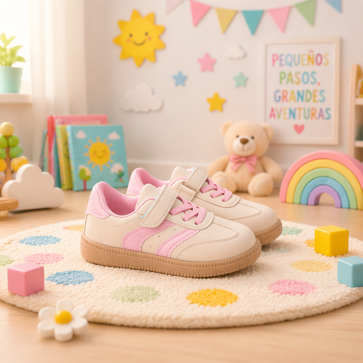 El rosa es un clásico que nunca falla. Estas zapatillas combinan genial con vestidos, leggings, jeans o uniforme escolar.