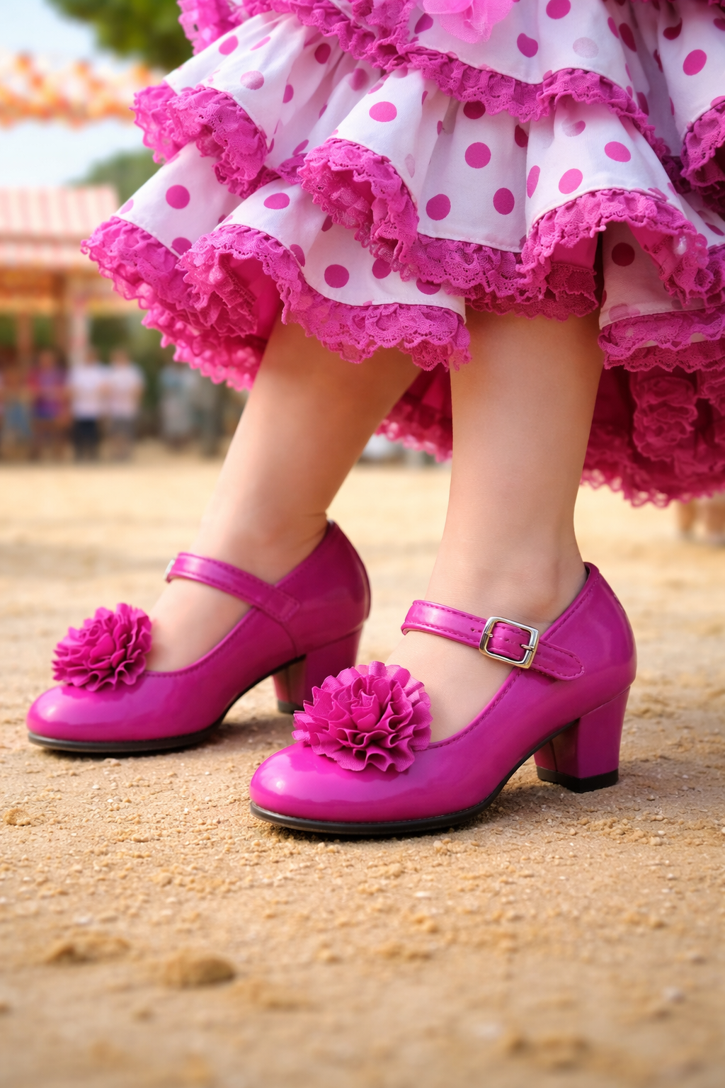 En Los zapatitos de Alba te ayudamos a elegir el mejor calzado de feria para niñas en color buganvilla, con opciones pensadas para bailar, pasear y disfrutar sin parar
