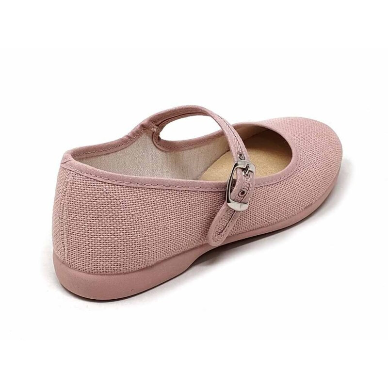 Bailarinas niña ceremonia en beige. Está fabricado en España con materiales de lino y una plantilla en el interior de textil para una mayor comodidad. Tiene un cierre de hebilla para mejor sujeción.La suela es de goma vulcanizada antideslizante.