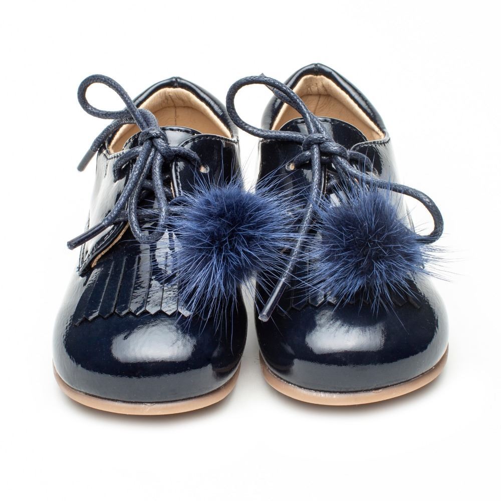 Zapato Niño Azul Marino Charol Blucher Pompón