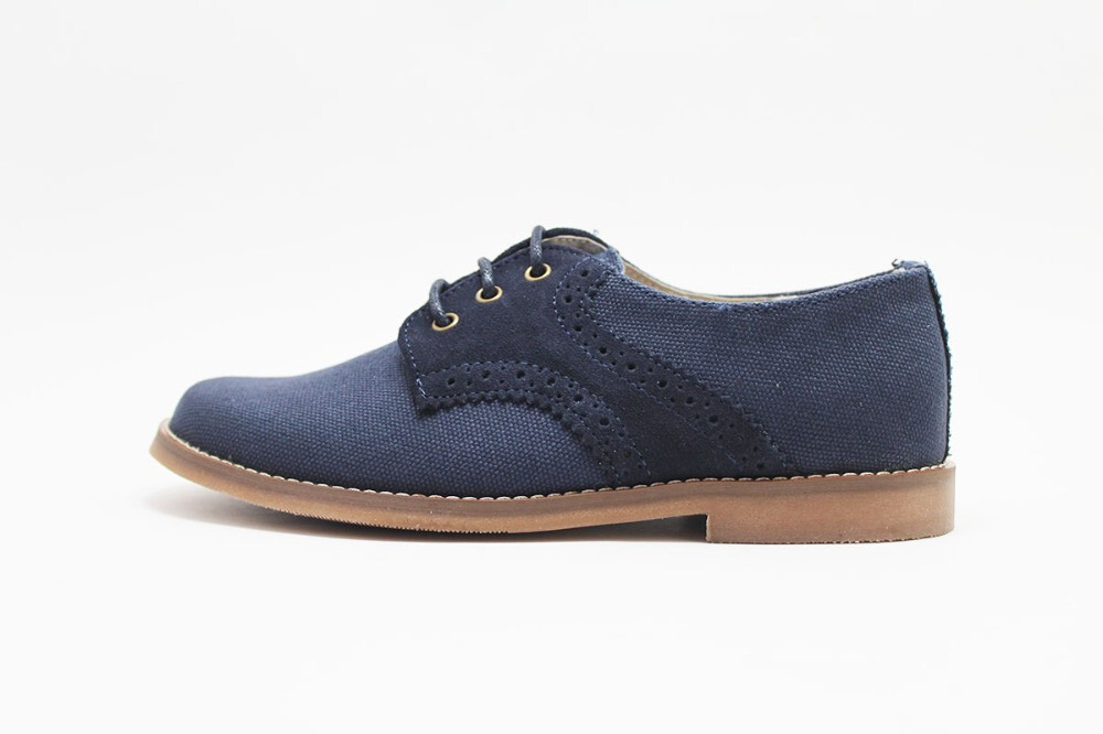 Descubre estos elegantes zapatos de comunión para niño en color azul marino, diseñados para combinar estilo, comodidad y calidad en un día tan especial. Fabricados en lino natural combinado con detalles en ante, ofrecen un acabado sofisticado y fresco, perfecto para ceremonias de primavera y verano.
